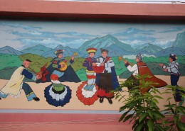 摘要: 楚雄州双柏县峨足村扶贫搬迁住房上的彝族人物绘画