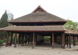 摘要: 是寨里专门提供给男女青年约会的场所。为三开间,中间堂屋给青年男女使用,平台旁为小储物间,从后门进来的小屋,放置生活用品。景颇族姑娘们不用出寨门,可以在公房里等候男友。青年们在这里唱情歌,嚼沙桔、芦子,培养爱情。公房长14.3米,宽6.3米、高6米,建筑面积91平方米。